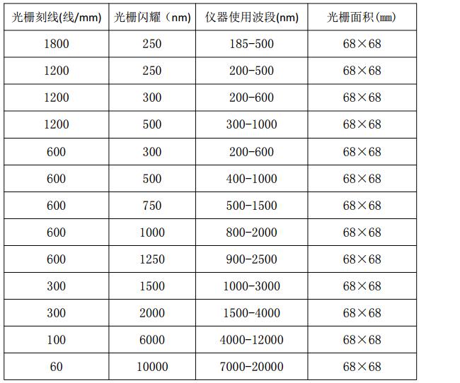 三、不同光柵使用參數(shù)